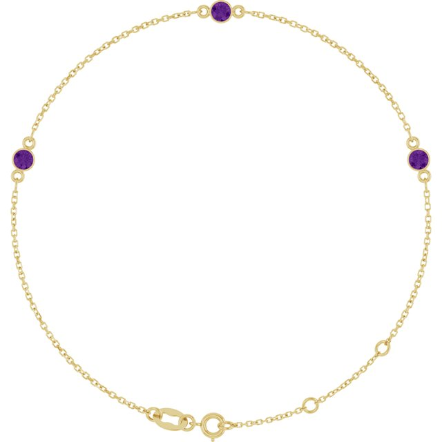 Yellow 14 Karat Bracelet Length 7.5 With 3 = 0.98Tw Round Si1 Amethysts