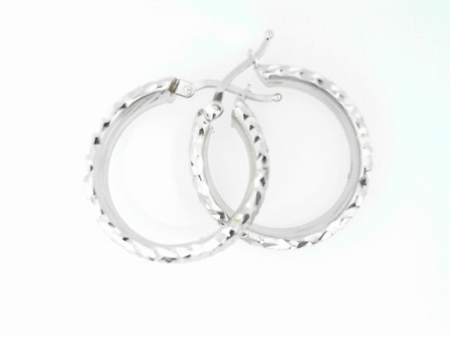 Lady's White 14 Karat Diamond Cut Small Hoop Earrings