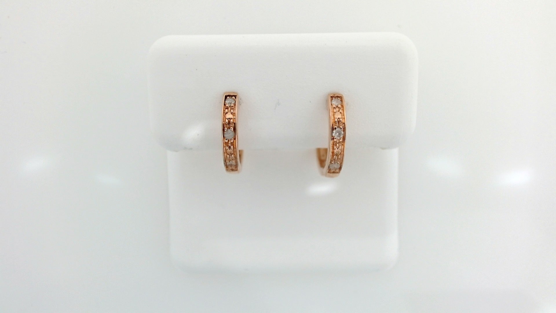 Rose 10 Karat Small Hoop Earrings With 6 = 0.05Tw Round G/H Si2 Diamonds