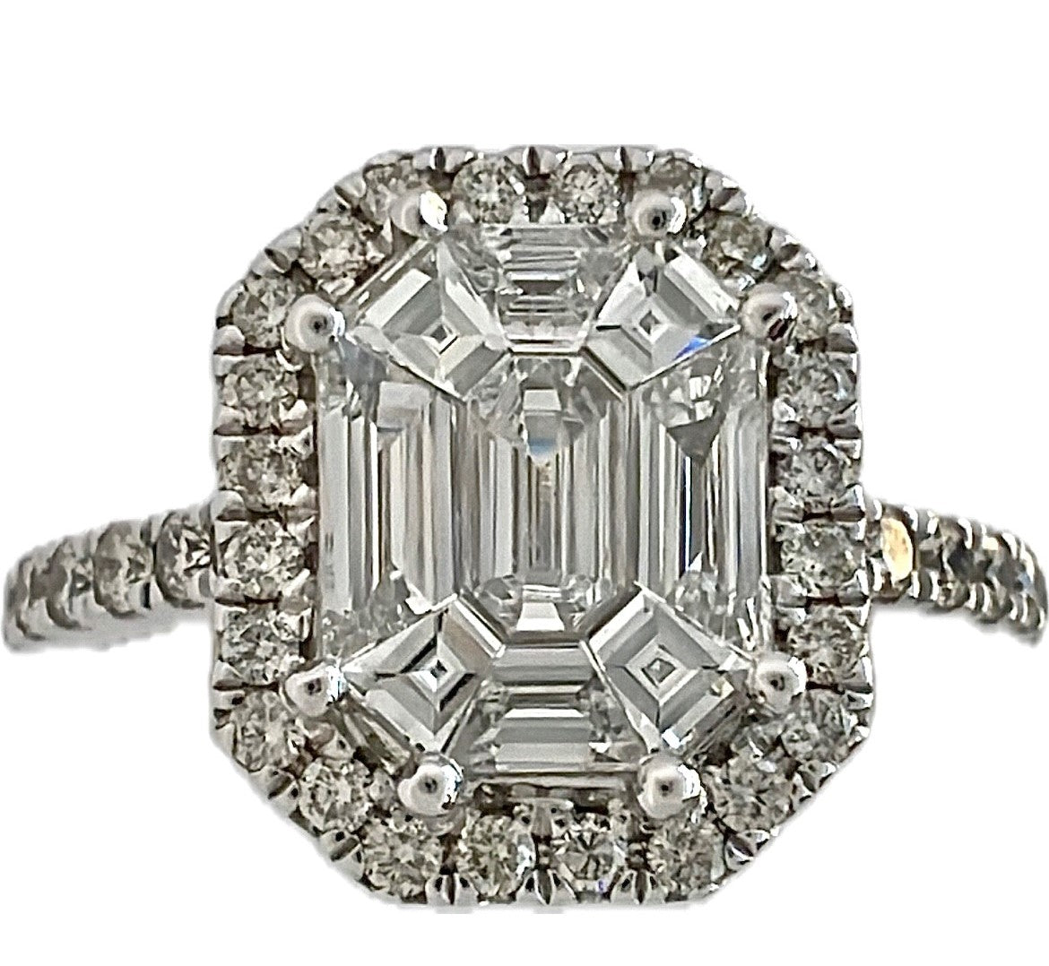 14k White gold Various shape Cluster Engagement Ring